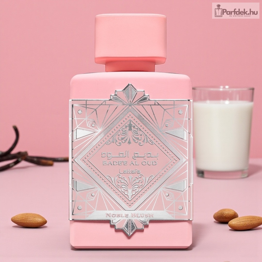 A Lattafa márkás Bade’e Al Oud Noble Blush egy édes, ínyenc eau de parfum nőknek. Az illat a rózsatej lágy jegyével nyit, amely krémes és romantikus hangulatot kölcsönöz. Szívében a mandula és az édes habcsók édes illatjegyei gazdagok és ízletesek. Az alap a szantálfa, a vanília és a pézsma meleg akkordjaiból áll.
